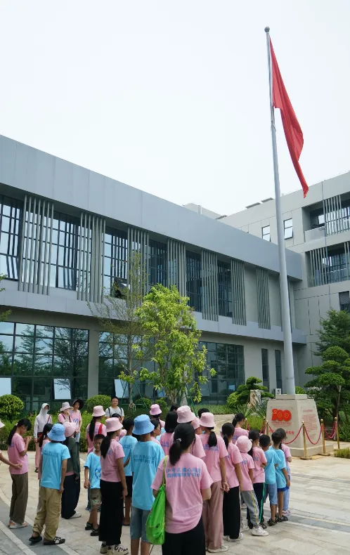 紧接着,孩子们来到了建党百年庆典红旗——070号红旗前。讲解员讲述了yp街机药业集团与庆典红旗的深厚渊源。孩子们听得津津有味,眼中闪烁着对党和国家的热爱与敬仰。